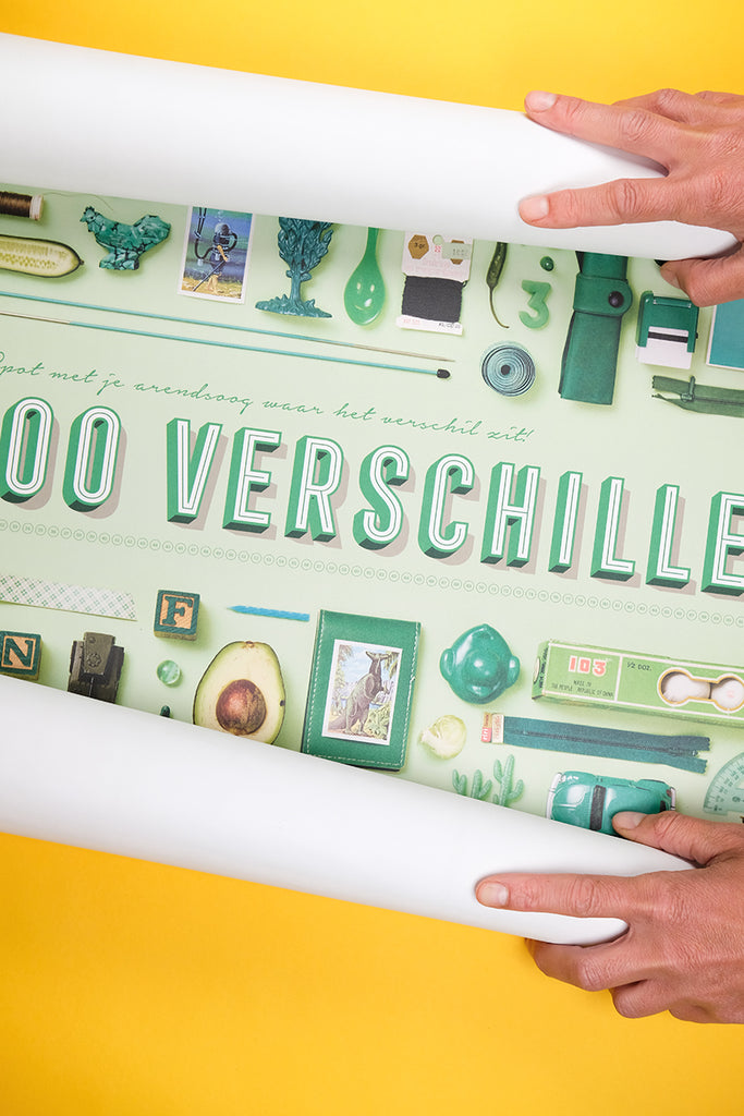 Op deze kwalitatieve poster van 65 x 100 cm vind je 2 dezelfde afbeeldingen, ze lijken een exacte kopie van elkaar te zijn maar niets is minder waar. Er zijn wel 100 verschillen... gebruik je arendsoog en spot ze allemaal! Have Fun!